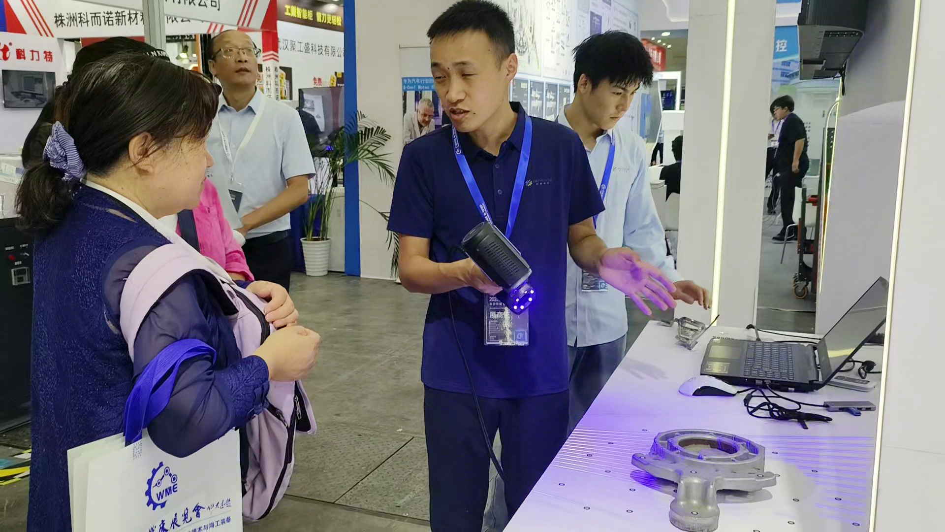 武汉国际博览中心B1馆内,一台正在执行三维扫描的便携设备被观众层层围住,它精准捕捉着复杂工件的每一个微米级细节,生动诠释着“新质势能”的真正含义。