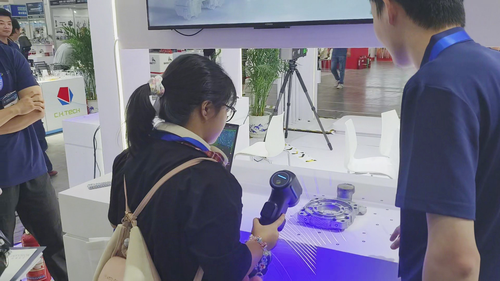 其便携性与工业计量级精度的完美结合,让观众亲眼见证了如何在短短几分钟内完成从扫描到高精度三维模型的全过程。许多观众亲自上手操作,对其在复杂环境下的稳定性和易用性给予了高度评价。