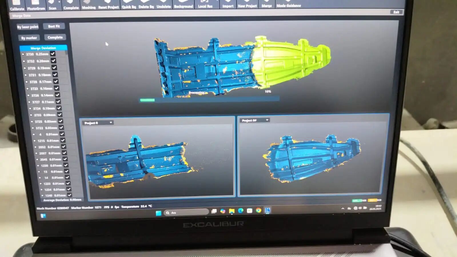 After the scan is completed, the massive hull instantly “comes together” through manual alignment using pre-arranged public marker points, effortlessly revealing a complete and highly accurate 3D model. Single-ship scanning time has been reduced to 2 hours (including pre-processing), representing a speedup of more than 5 times compared to traditional measurement methods.