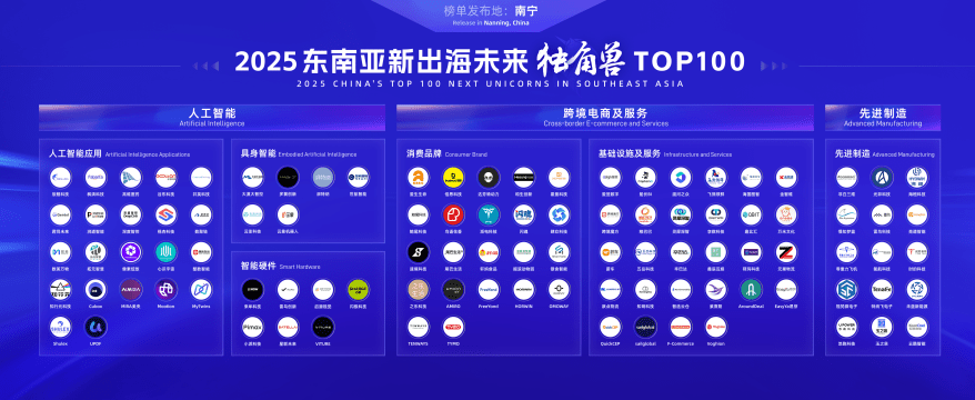 The list selects 100 companies from over 500 enterprises that have demonstrated significant growth potential in the ASEAN market, aiming to identify and nurture high-growth tech firms geared toward the ASEAN region, thereby driving “North China, Guangzhou R&D + Guangxi Integration + ASEAN Applications” The construction of a cross-border industrial ecosystem encompasses three key sectors: artificial intelligence, cross-border e-commerce and services, and advanced manufacturing.